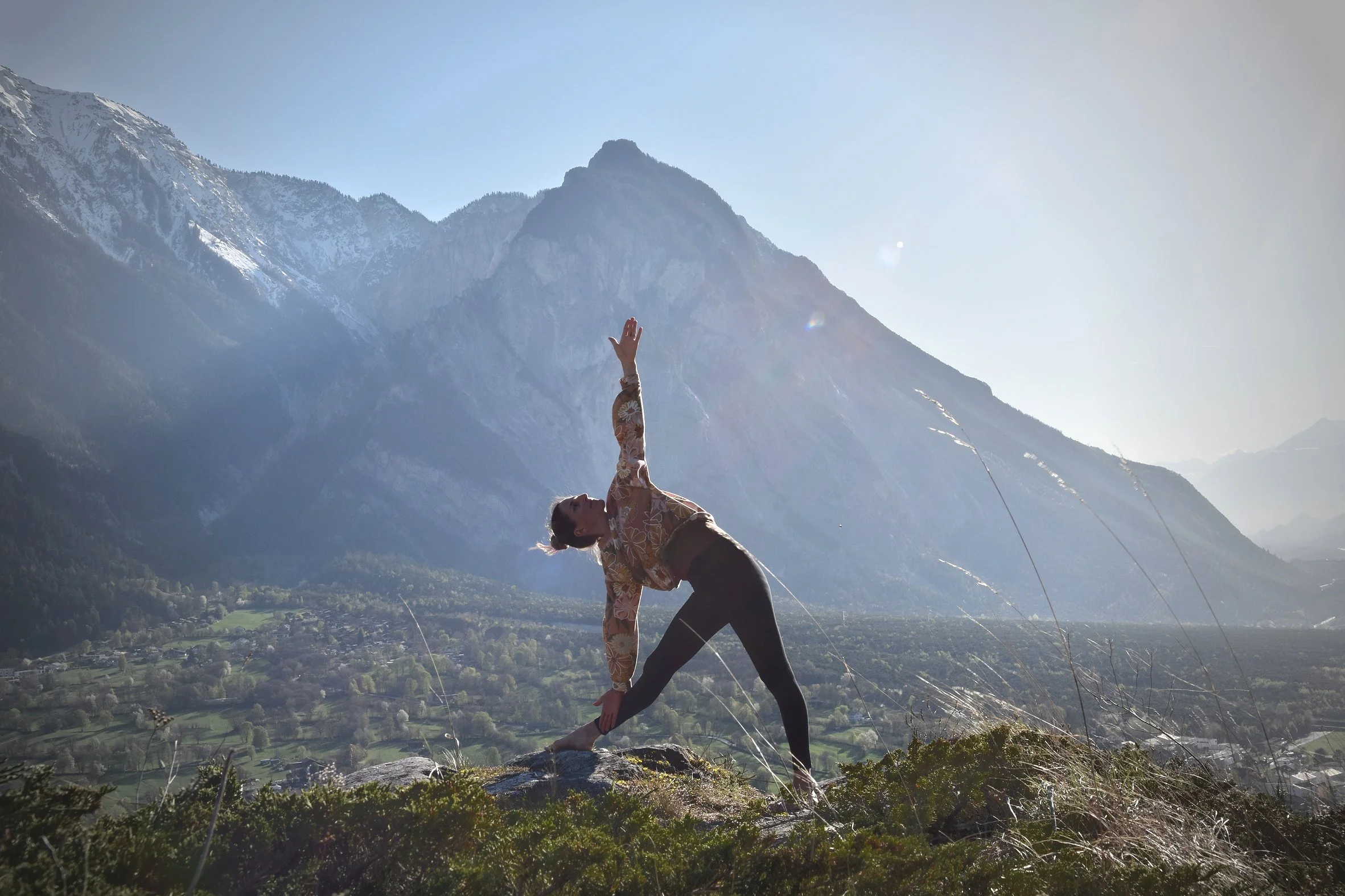 Erlebe Yoga inmitten der erwachenden Bergwelt. Beim Yoga im Freien verbindest du sanfte Übungen mit frischer Bergluft, wärmenden Sonnenstrahlen und der lebendigen Natur unter deinen Füssen.